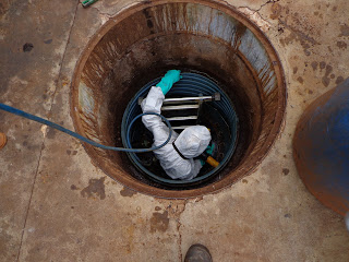 A sujeira acumulada no tanque exigirá a entrada de pessoal especializado em seu interior para a limpeza, e posteriormente a aplicação de produto a base de hipoclorito de sódio, devido a sua ação bactericida.