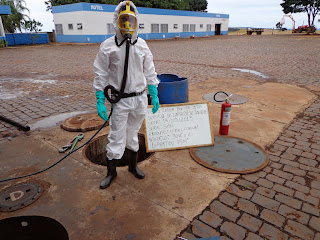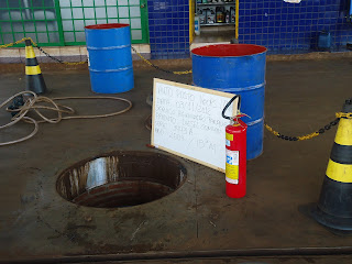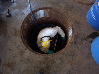 Limpeza de tanques executada com segurança, obedecendo todas as normas de segurança do trabalho.