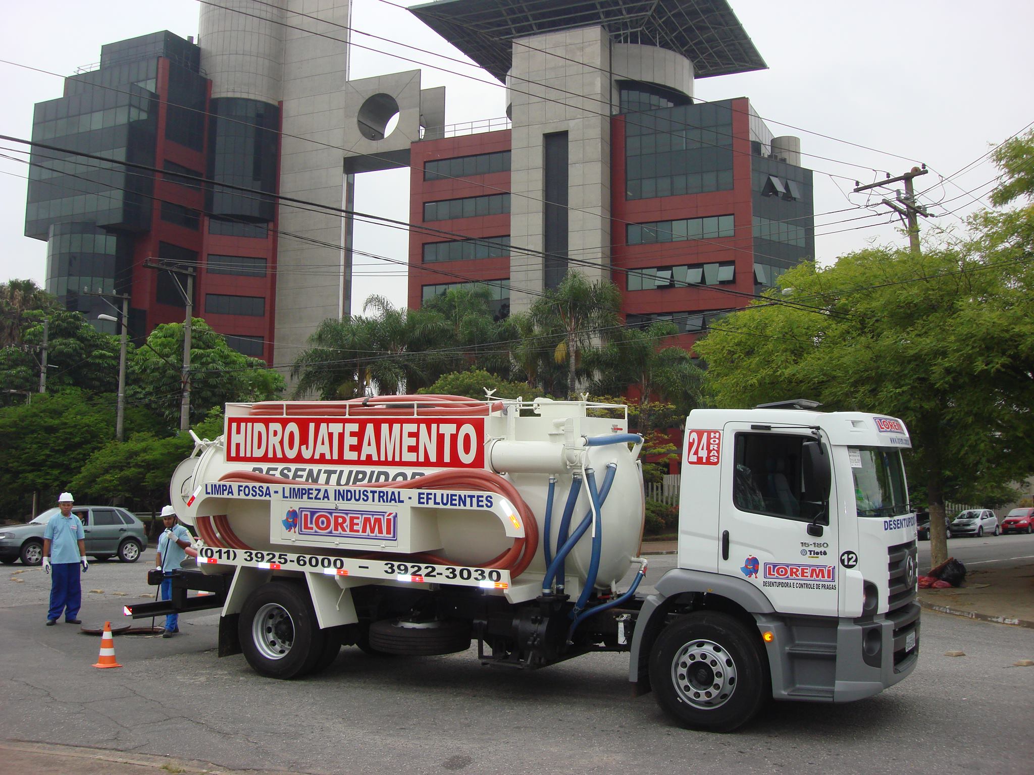 Um caminhão, equipado com reservatório de água de alta pressão ou de vazão, de acordo com o tipo de entupimento, e dirigido por EPIs (Equipamentos de Proteção Individual) e técnicos qualificados, projeta um jato d’água sobre determinada superfície na qual se acha incrustado certo depósito ou material.